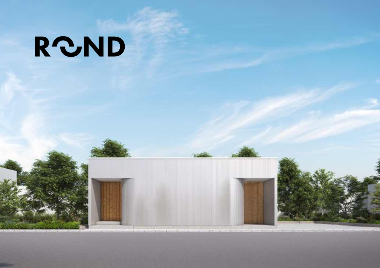 印象的な玄関先の曲線は角のない幸せなご家族の暮らしを象徴します。